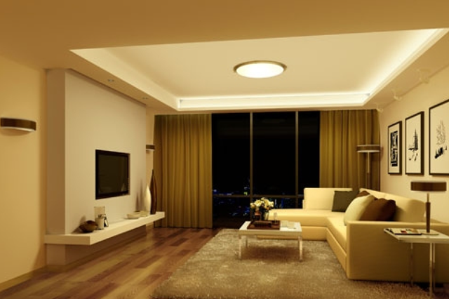 客廳是家居空間中使用頻率最高的公共區(qū)域,建議用散光+重點(diǎn)照明的方式來(lái)布置,如將日光燈隱藏在天花板吊頂?shù)臒舨壑校枰獣r(shí)即可提供足夠明亮的散光光源;客廳背景墻或沙發(fā)背景墻上方可用暖光射燈重點(diǎn)強(qiáng)調(diào),突出明暗虛實(shí);沙發(fā)角落可以添置一盞光源向下的臺(tái)燈或落地?zé)簦鳛橹攸c(diǎn)閱讀燈。